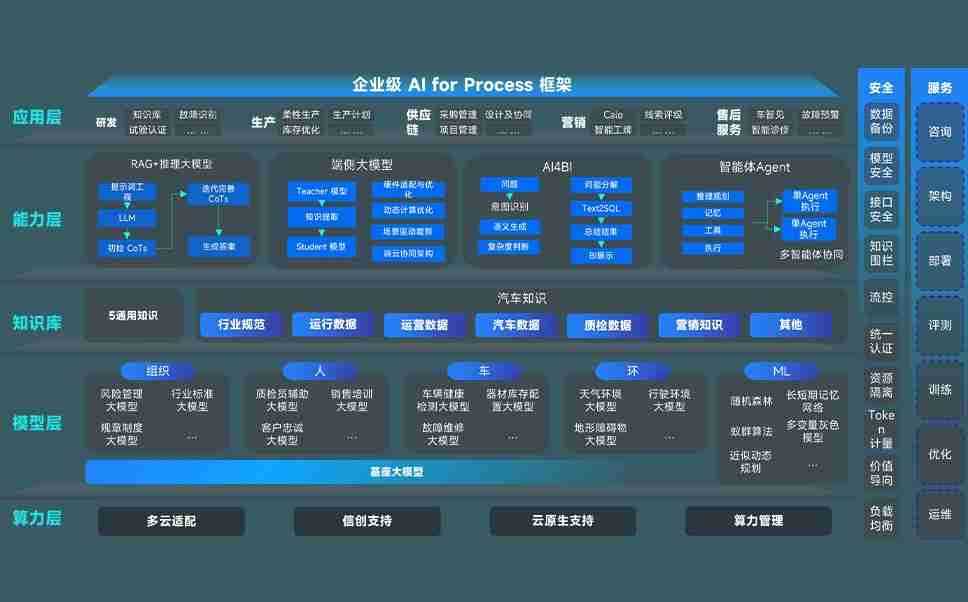 端到端的一站式AI工作空间深度融合了从企业战略规划到日常经营的全流程业务板块,,,,定向解决车企内部领域多、、、部门多、、、、链条长、、、、场景碎片化等难题,,支持车企快速构建以AI为核心的生产力写作体系,,,实现任务执行与AI能力的无缝集成与交互